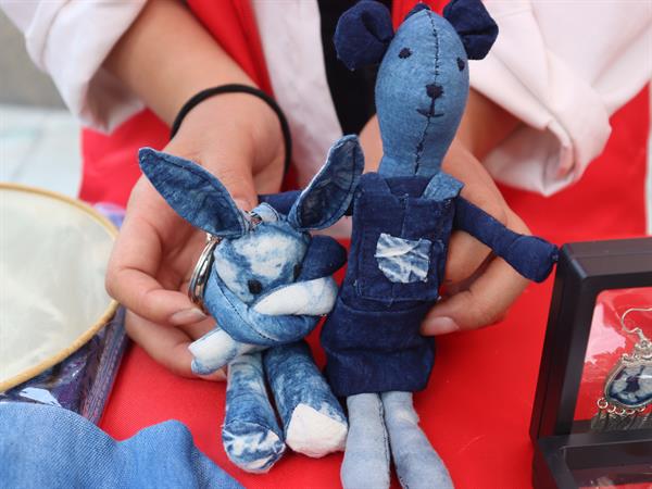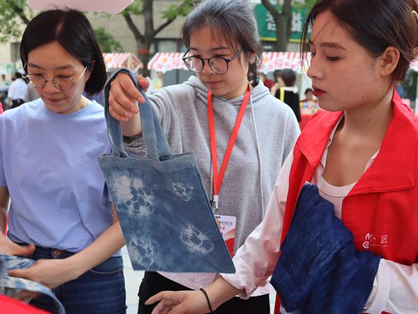 艺小匠将自己对公益事业的爱心注入进手工艺品中,独一无二的扎染帆布包、精致小巧的耳饰、惟妙惟肖的小玩偶等等,无不流露出对此次活动的用心与支持,艺小匠们将自己亲手制作的精美文创小商品整齐摆开,叫卖声依次传起,路过的人们纷纷停下脚步来到摊位上选购物品。金钱有价,爱心无价。