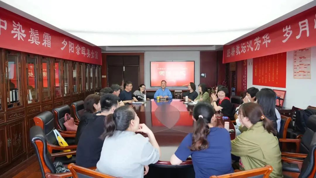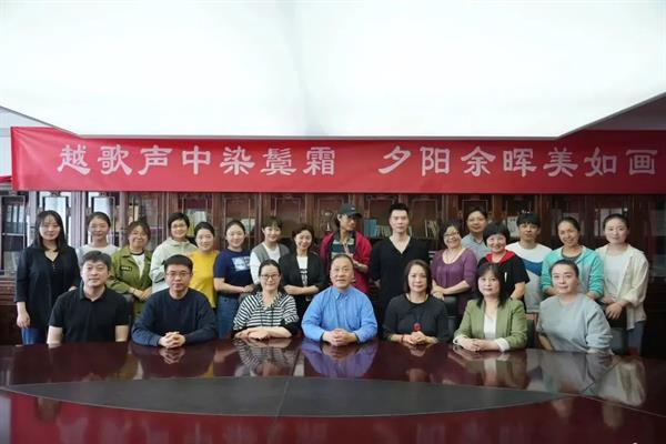 4月19日,戏曲学院2302会议室里情谊浓浓,时而欢声笑语,时而掌声热烈,时而也有情到深处难自禁的热泪。两条横幅“躬耕教坛沁芳华 岁月峥嵘烛亮娃”和“越歌声中染鬓霜 夕阳余晖美如画”很是应景。