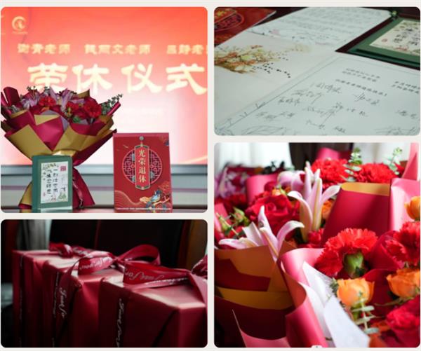 这里是戏曲学院全体教职工为三位退休教师举办的荣休仪式现场。“我们怀着无限崇敬、依依不舍的心情为谢青、钱丽文、吕静三位老师举行荣休欢送会”,戏曲学院党总支专职副书记谢志勇在主持词中说。