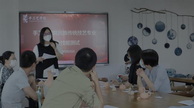 5月25日,根据学校《学生专业能力评价方案》要求,民族传统技艺专业组织开展学生专业能力比赛。以“技艺传承+活化创新”为导向,测试分为青瓷烧造、水印木刻、传统印染、篆刻四个专业方向,学生可以选择一个专业方向进行创作,要求作品内容健康向上,技能操作娴熟,能真正做到“艺工结合”。21级民族传统技艺班的41名学生顺利完成了作品创作。作品评审工作由民传教研室组织开展,经过评审,共评出一等奖5名、二等奖13名、三等奖10名。在评审结束后,民传教研室积极开展了研讨,总结本次专业能力比赛中存在的相关问题,并对明年将要开展的“手工艺术设计”职业技能大赛做好准备。