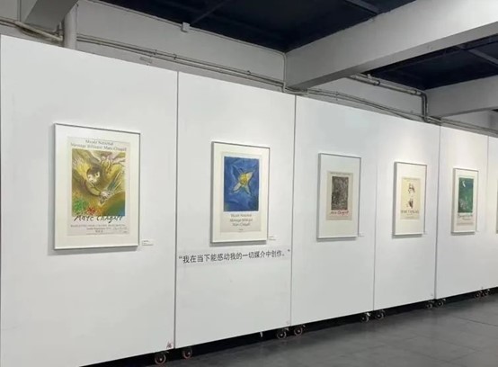 马克·夏加尔,出生在白俄罗斯的犹太人画家,他是现代绘画史上的伟人,游离于印象派、立体派、抽象表现主义等一切流派的牧歌作者。本次展出夏加尔的版画真迹作品,画作的风格兼有老练和童稚,并将真实与梦幻融合在色彩的构成中。通过观展学生们感受着艺术家为了追寻自然与纯朴的艺术本质,依靠内在的诗意和想象力,把来自个人生活经验的感悟通过绘画的形式语言转换到画面里,产生或宁静悠远,或渊然而深的意境。