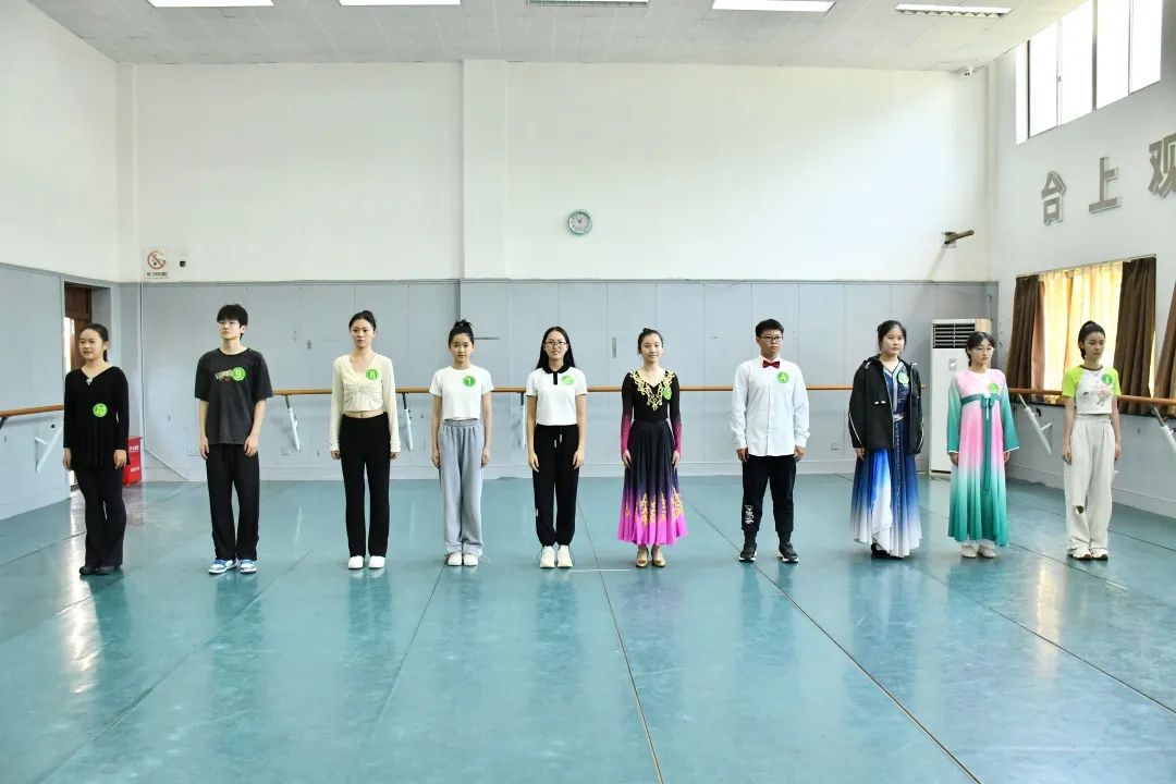 一早,6号楼候考厅已坐满了考生,考试开始后,大家由志愿者们分批带入5号楼考场。候考教室内气氛虽然紧张严肃,却也不失活力。考生们有的默默练习舞蹈动作,有的在角落练声开嗓,有的沉浸地背着台词……老师给考生宣读考试规则,贴心地缓解大家的紧张情绪,考生们自信满满地在考场外等候,时刻保持自己最好的状态。
