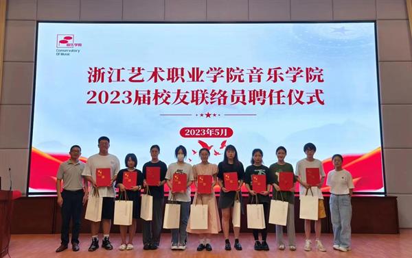 新聘任的2023届校友联络员们现已投入校友联络工作,他们也将积极履行校友联络员的职责,在推进校友数据库建设、实时反馈校友发展动态、策划组织校友活动、促进地区校友工作开展、搭建校企合作发展平台等方面发挥好联络员的桥梁及纽带作用,成为浙艺精神最坚定、最有力的传承者与弘扬者。
