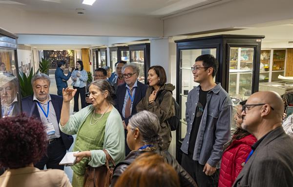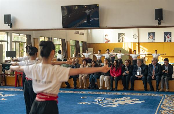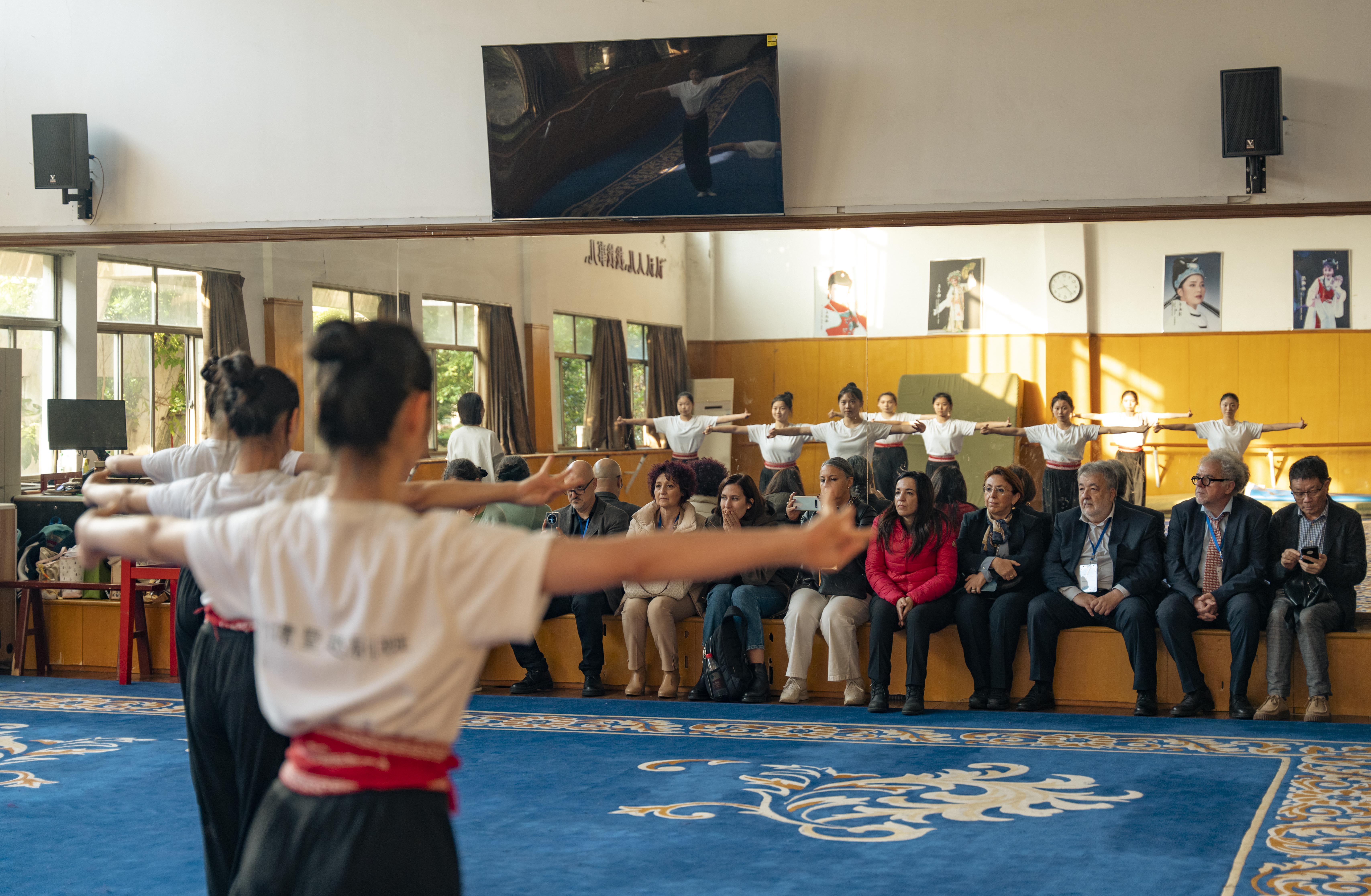 校党委委员、副校长徐芳代表学校迎接了代表团。代表团先后参访了戏曲学院、音乐学院、舞蹈学院和手工艺学院。在参观过程中,代表团成员对学校的教学设施、师资力量和学生作品给予了高度评价,并与各学院负责人就教育教学、科研创新等方面进行了深入交流。