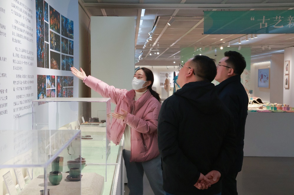 12月12日上午,浙江雅佳豪拍卖有限公司总经理喻天龙一行来到手工艺学院参观了“匠心守艺”非遗创意成果展,并进行交流。