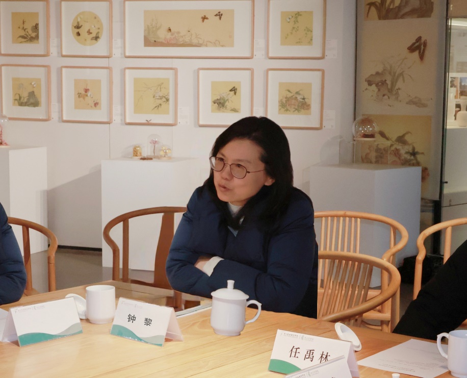 钟黎提出,在产教融合的大背景下,手工艺学院希望能进一步与有实力、有潜力的企业通力合作,联合打造文物摄影、展陈设计、文案策划、新媒体运营、电商直播等实训基地,进一步拓宽学生的就业途径,实现校企双方共同发展。