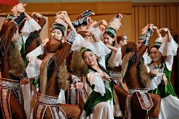 在“我爱浙疆・基层文化员”阶段教学成果汇报演出中,新疆班的同学们展示了音乐与舞蹈模块的学习成果。他们的表演充满了青春活力和艺术感染力,赢得了在场观众的阵阵掌声。这一汇报演出不仅展示了同学们的专业素养和艺术才华,更展现了浙阿两地文化交流合作的丰硕成果。