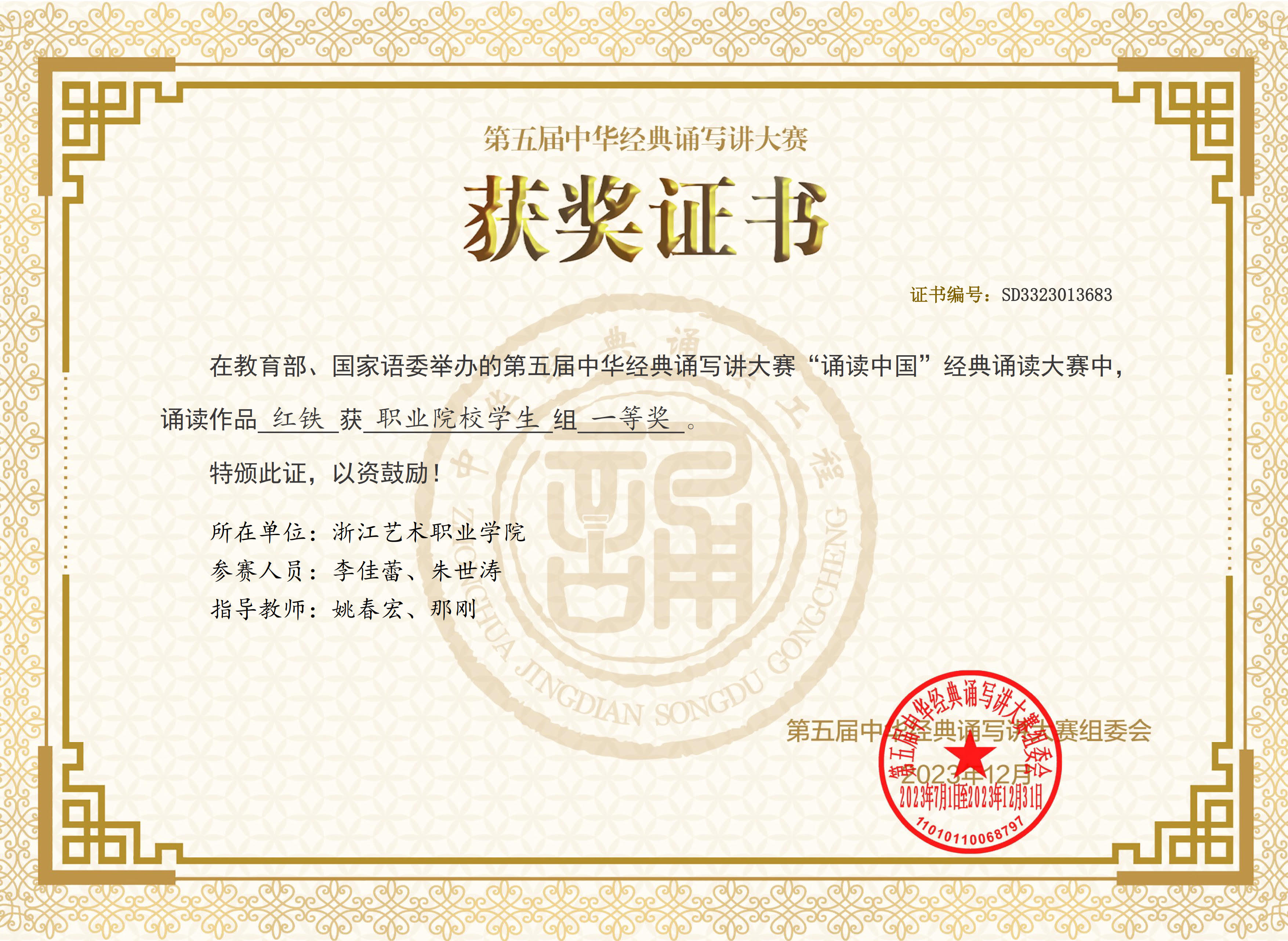 全国一等奖!浙艺师生在第五届中华经典诵写讲大赛中再创佳绩