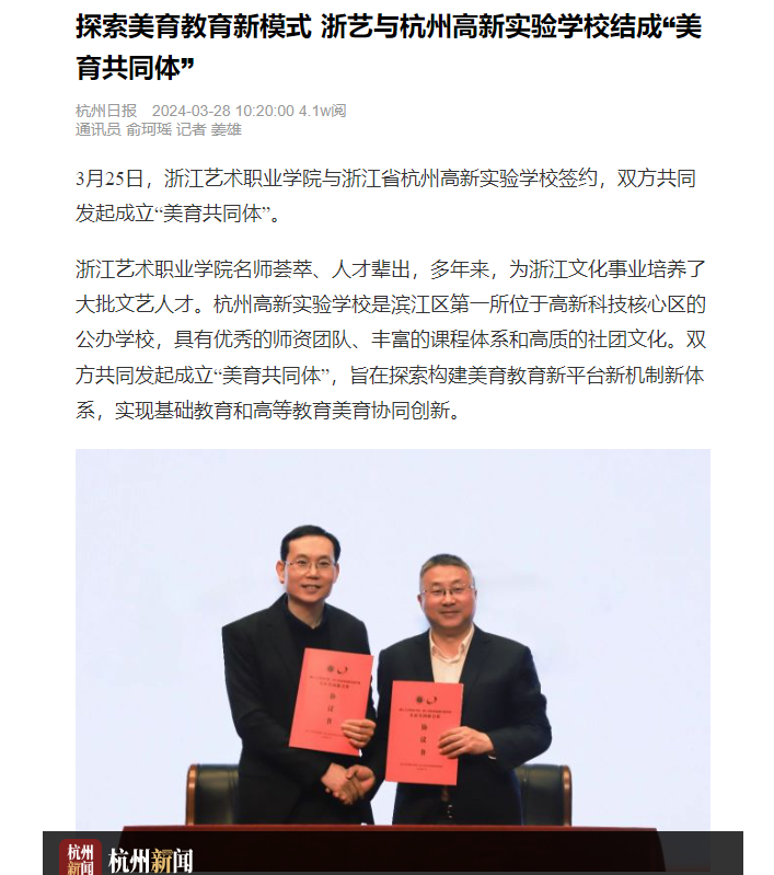 杭州新闻:探索美育教育新模式 浙艺与杭州高新实验学校结成“美育共同体”