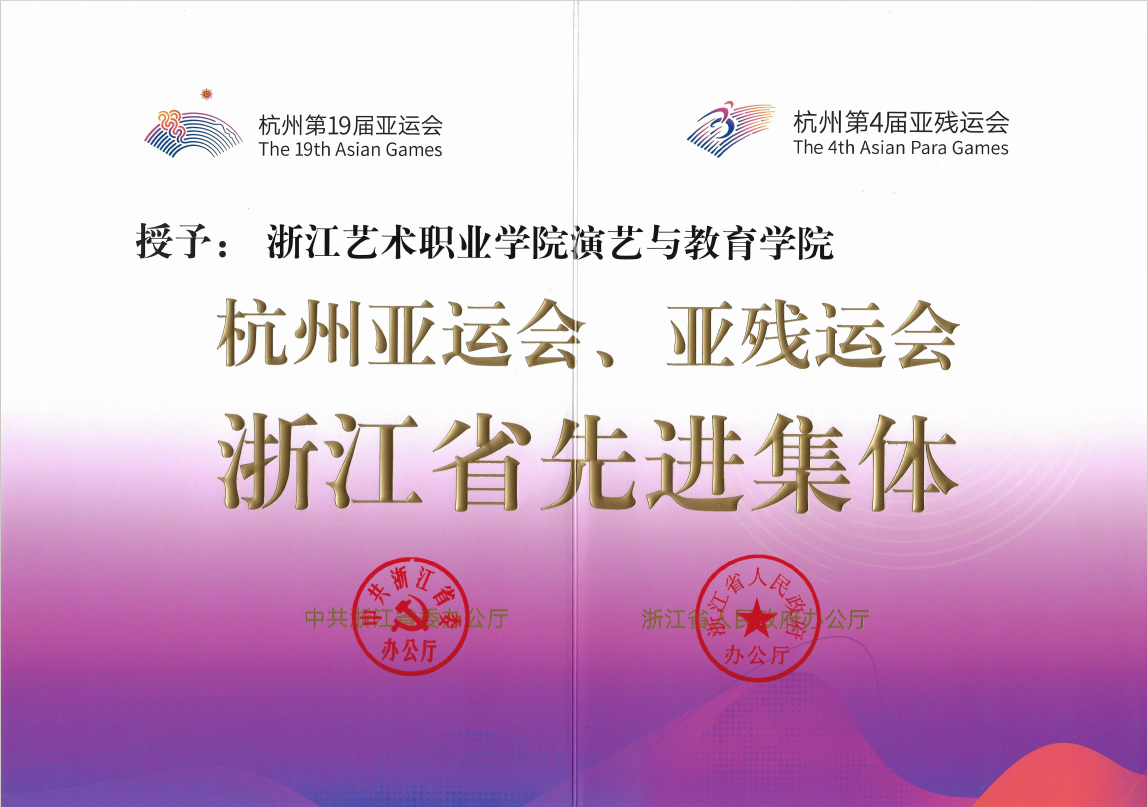 ▲荣获杭州亚运会、亚残运会浙江省先进集体称号