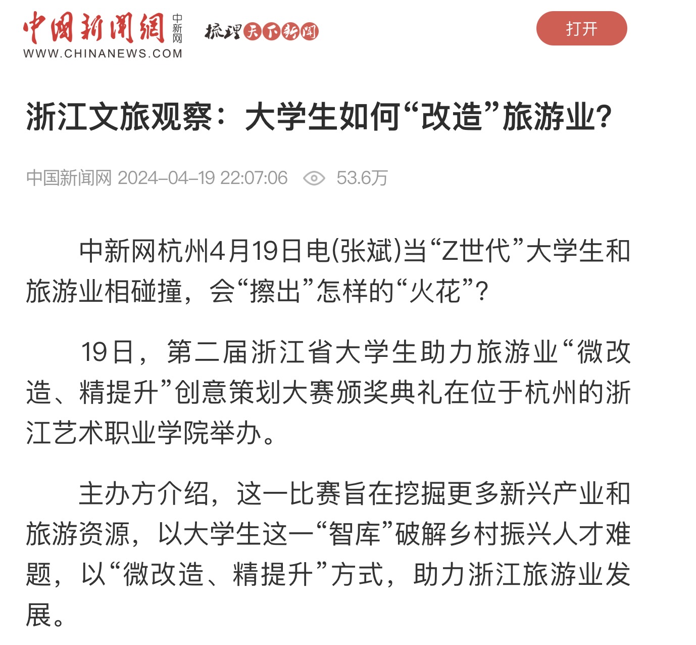 中国新闻网 :浙江文旅观察:大学生如何“改造”旅游业?