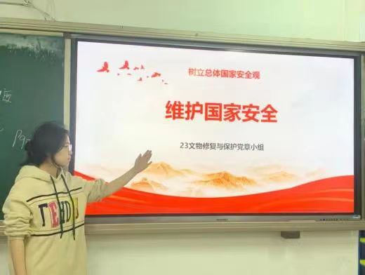 手工艺学院22文物、22文创、22民传、23展示、23文物团支部组织开展了关于国家安全的主题团课。团课宣讲主要围绕学习贯彻总体国家安全观,深刻阐述了维护我国国家安全的根本遵循、国际环境、风险挑战等方面内容,切实提高团员青年国家安全意识和反间谍安全防范能力。