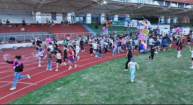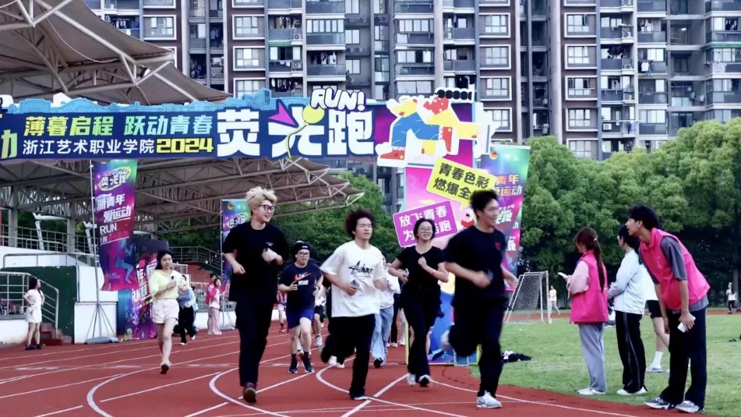 在夜色与光影的交织中,体育场被点点荧光点亮,回荡着师生票选出的夜跑歌单,老师和同学们尽情享受着奔跑带来的激情与欢乐,共同见证浙艺初夏的浪漫。