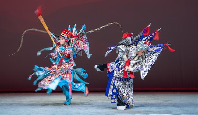 第二篇章《诀》 “四功五法”,授艺解惑之诀要生、旦学员以《牡丹亭·惊梦》《牡丹亭·游园》开场,展示此次培训京、昆、晋、川等多元技艺课堂,展示长绸、褶子功、趟马、甩发功、长水袖等基本技巧,以四功五法展现戏曲艺术的精妙绝技。