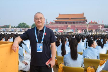 2021年,中国共产党成立 100 周年庆典如期举行,陶建新再次带领团队站上天安门的舞台。