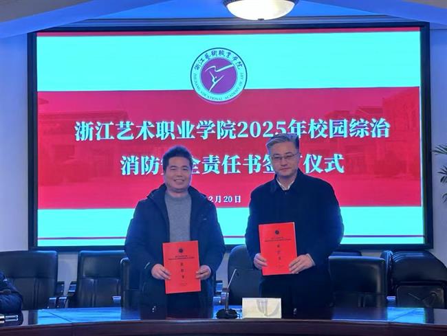 为落实新一年度校属各部门的安全管理职责,2月20日,我校举行2025年度校园治安综合治理和消防安全目标责任书签订仪式。仪式由校长施俊天主持。