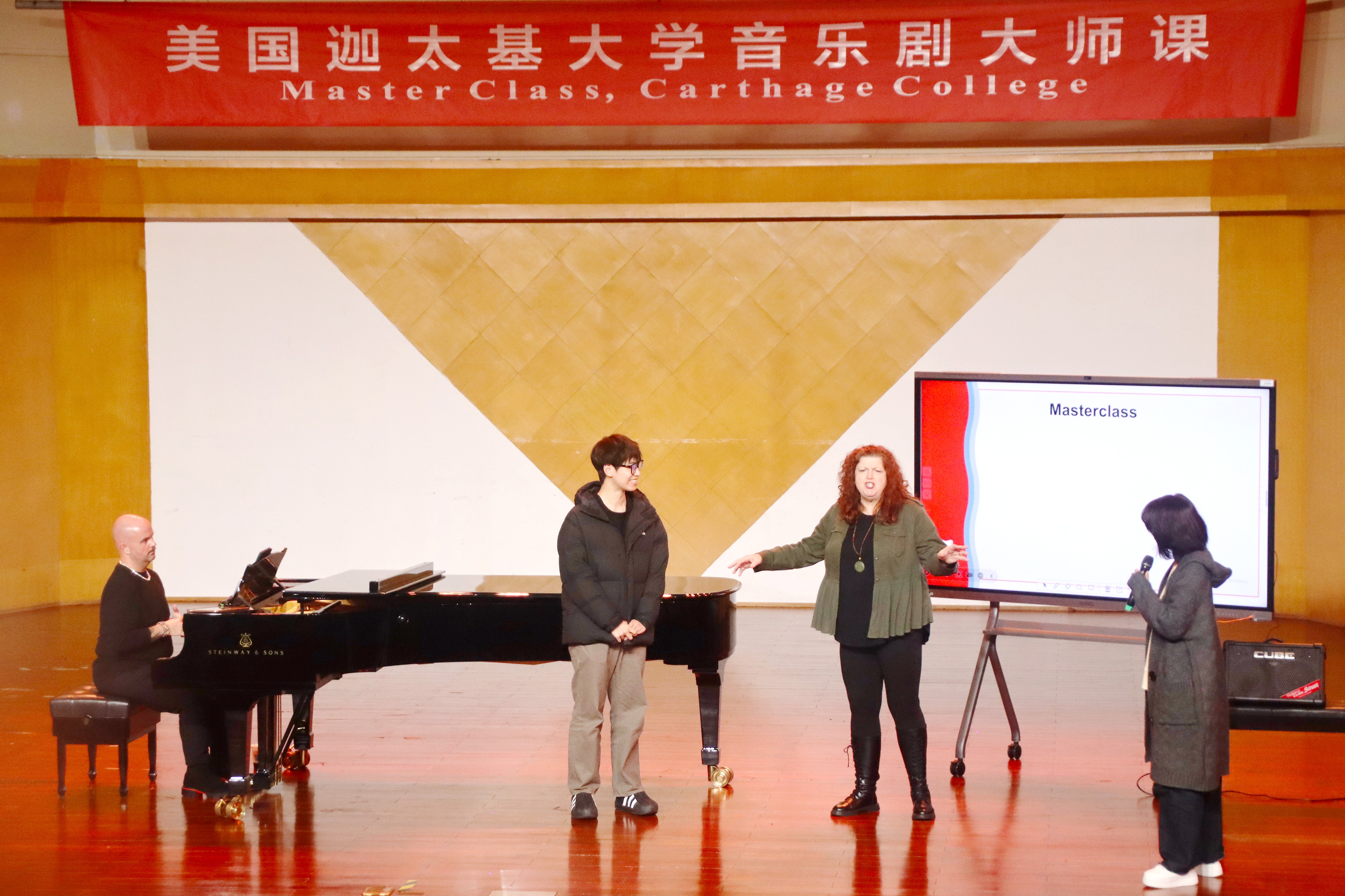 交流期间,科琳·奈斯教授分别在音乐学院合唱教室和音乐厅进行了第五次授课。她声情并茂地讲解、演示,并与现场师生积极互动,充分展现了音乐艺术的独特魅力,激发了大家对音乐更深层次的热爱和理解。科琳·奈斯教授不仅分享了最新的“Estill声音功能性训练”理念,还亲自指导学生如何在表演中融入情感,提升表现力。课堂上,师生们热情高涨,积极参与,整个氛围充满了活力。大家都被科琳·奈斯教授的专业素养和教学热情所感染,收获满满。