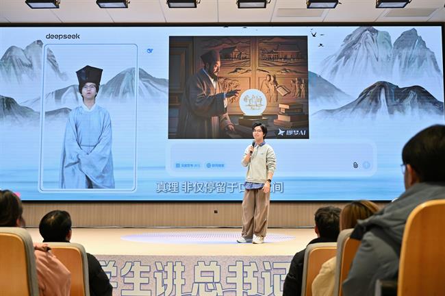 活动现场,宣讲员们从首款国产3A游戏《黑神话·悟空》、“百亿补贴项目”《哪吒2》、AI开源大模型等话题切入,围绕中华优秀传统文化、古建修复和保护、文化自信等主题,运用习近平新时代中国特色社会主义思想蕴含的世界观和方法论来阐释这些现象背后的道理。