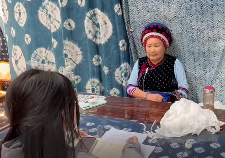 “云裳染韵”团队注重方法的科学性和有效性,灵活运用深度访谈、实地观察等多种手段,全方位、多角度地收集信息。深刻了解白族扎染的生存现状,调研小队总结调研结果和当前非遗传承的实际情况,努力探求白族扎染“活化”传承新路径。