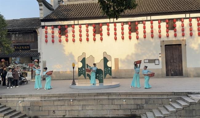 2024年,舞蹈学院敏锐把握文旅融合新趋势,与南浔古镇开启产教融合新业态。一年来,学院师生多次奔赴南浔古镇,开展新演艺形态研究,用舞蹈艺术的独特魅力为古老的南浔古镇注入了全新的活力。