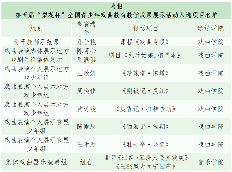 我校2项目入选第五届“梨花杯”全国青少年戏曲教育教学成果展示活动优秀成果