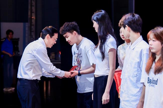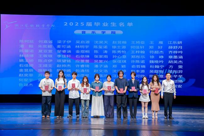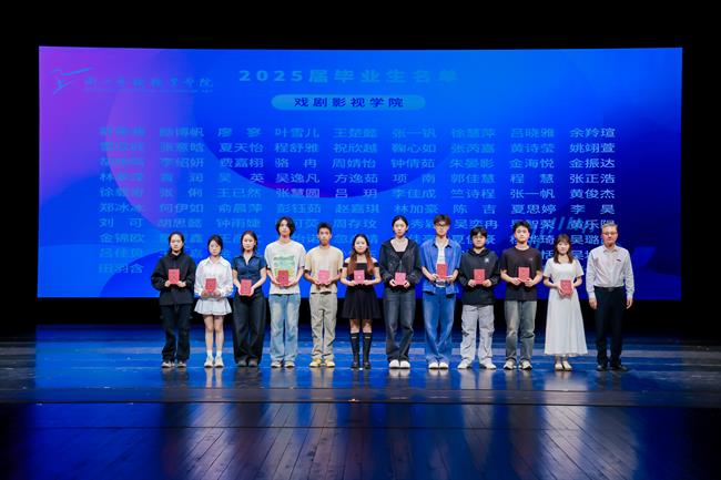 党委书记薛亮、校长施俊天颁发毕业证书并寄语毕业生:做文化自信的践行者,始终秉持为人民抒写、为时代抒怀的志向,铭记校训精神,勇攀艺术高峰;做创新发展的开拓者,永葆创新锐气,主动拥抱变革,努力做艺术创新的开拓者,在中国式现代化的火热实践中发光发热;做服务社会的奉献者,永远保持赤子之心,用文艺之美温暖社会,用专业服务人民,在今后的工作中用实际行动中诠释一名文艺工作者的社会责任。