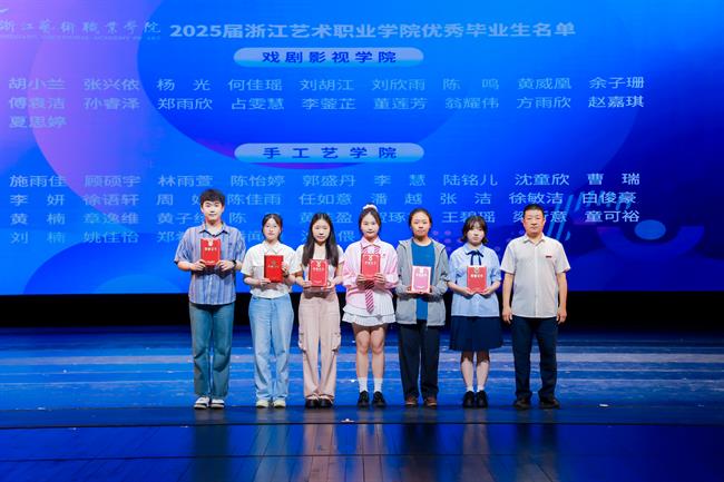 毕业典礼上对校友联络员代表颁发聘书,并为2025届校级优秀毕业生代表、2025届省级优秀毕业生代表及2025届毕业生国家奖学金获得者颁奖。