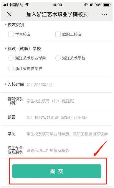 步骤2:点击云卡 填写校友卡信息并提交(*为必填项)